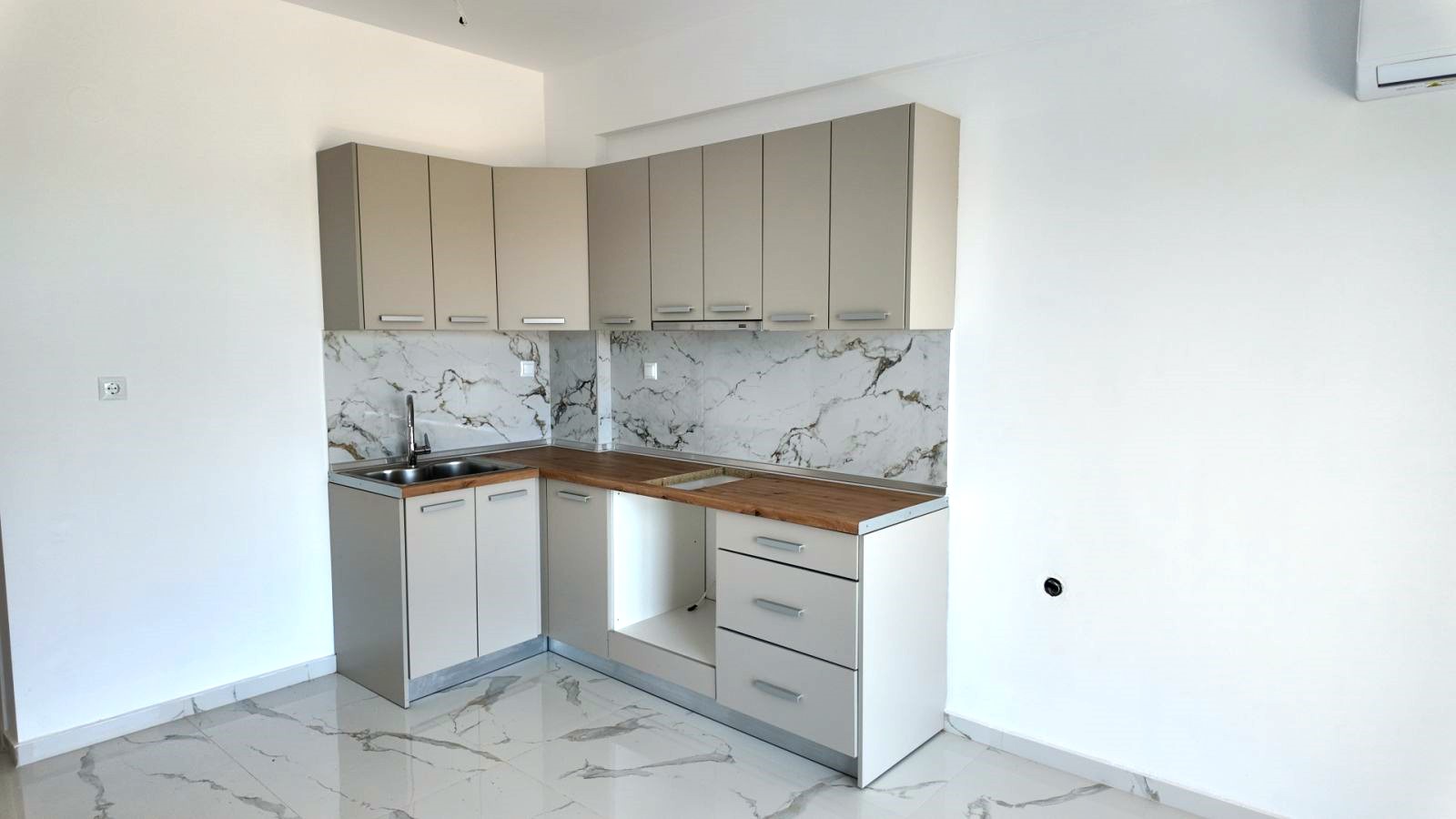 ✅ Επιπλωμένη κουζίνα με προεγκατεστημένα ντουλάπια (χωρίς ηλεκτρικές συσκευές)